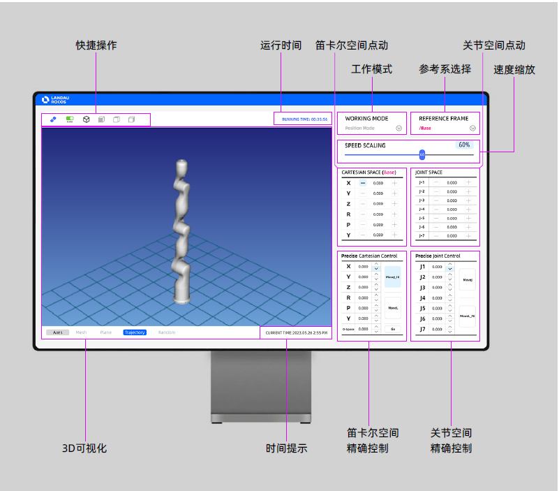 - Quickly implement functions such as model visualization, curve display, data saving, and joint control.