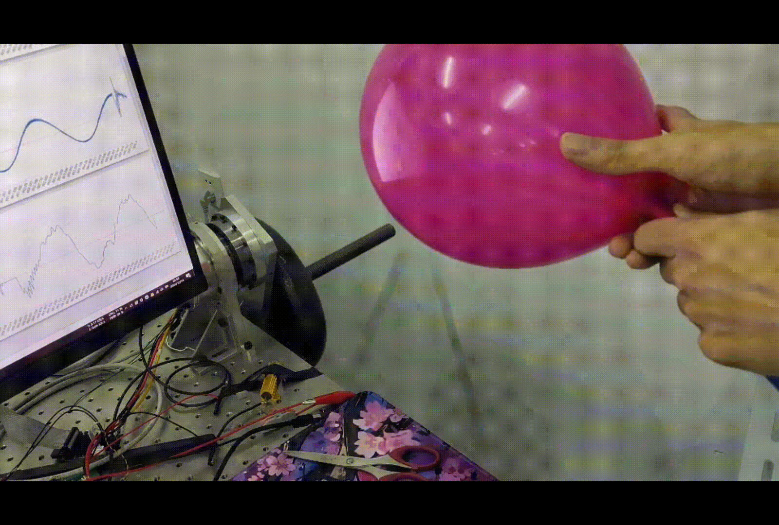 The collision detection test uses a balloon to simulate a fragile obstacle. Our servo driver can detect collision events within milliseconds and trigger a rapid safety response, effectively preventing damage to the robot and its surroundings during interaction.
